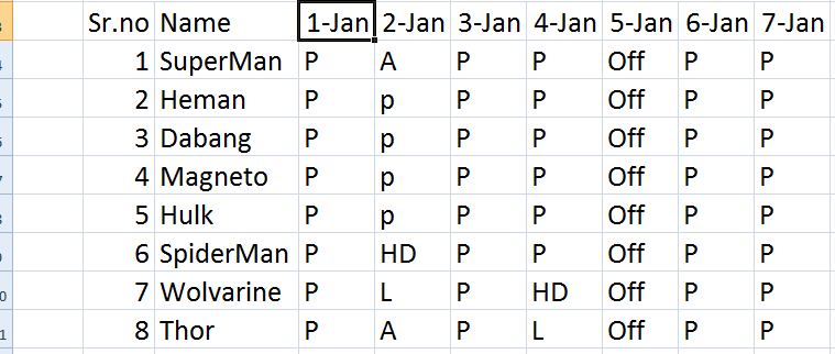Half day attendance formula. As soon as you enter the leave code for any employee it gets highlighted in red in the case of half-day it gets highlighted in yellow. Normal Shift employees attendance when they have approved half day leave depends on their schedule for that date regardless of the no. COUNTIFB201AF201V which returns all of the Cells marked with a V.