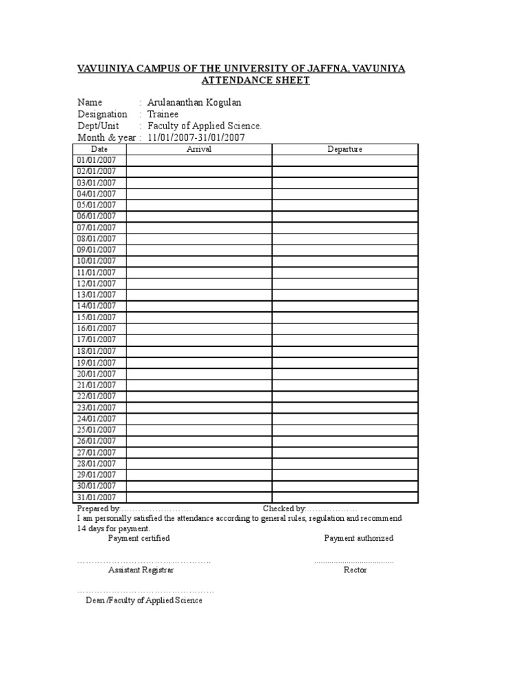 Out Of This World Ojt Attendance Sheet